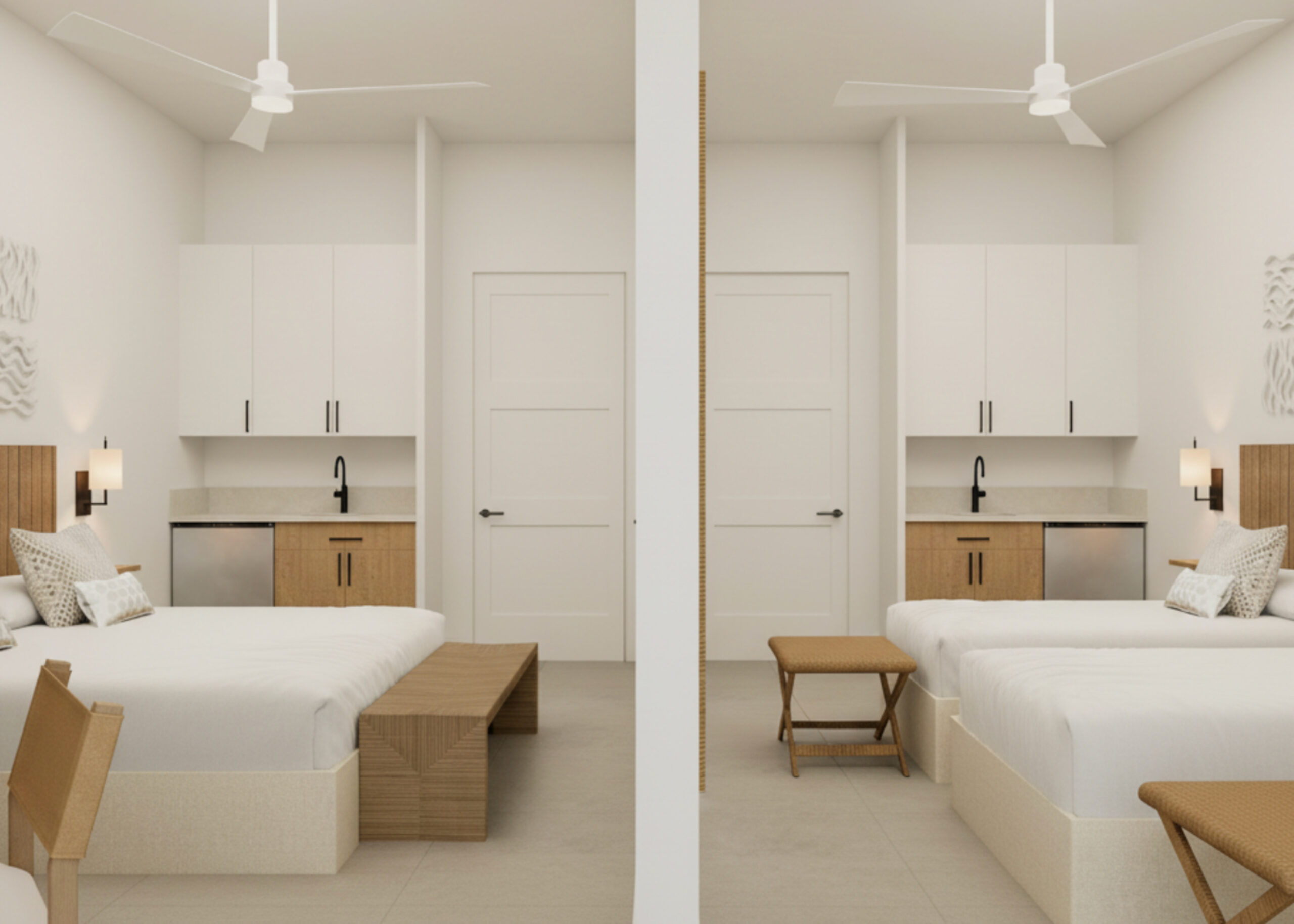 Connecting rooms at The Retreat, Turks and Caicos offer a calm, contemporary sanctuary on the upper or lower floors with warm natural textures and thoughtfully appointed details. These rooms combine adjacent king and twin rooms for the convenience or families or groups via a lockable interior door.
